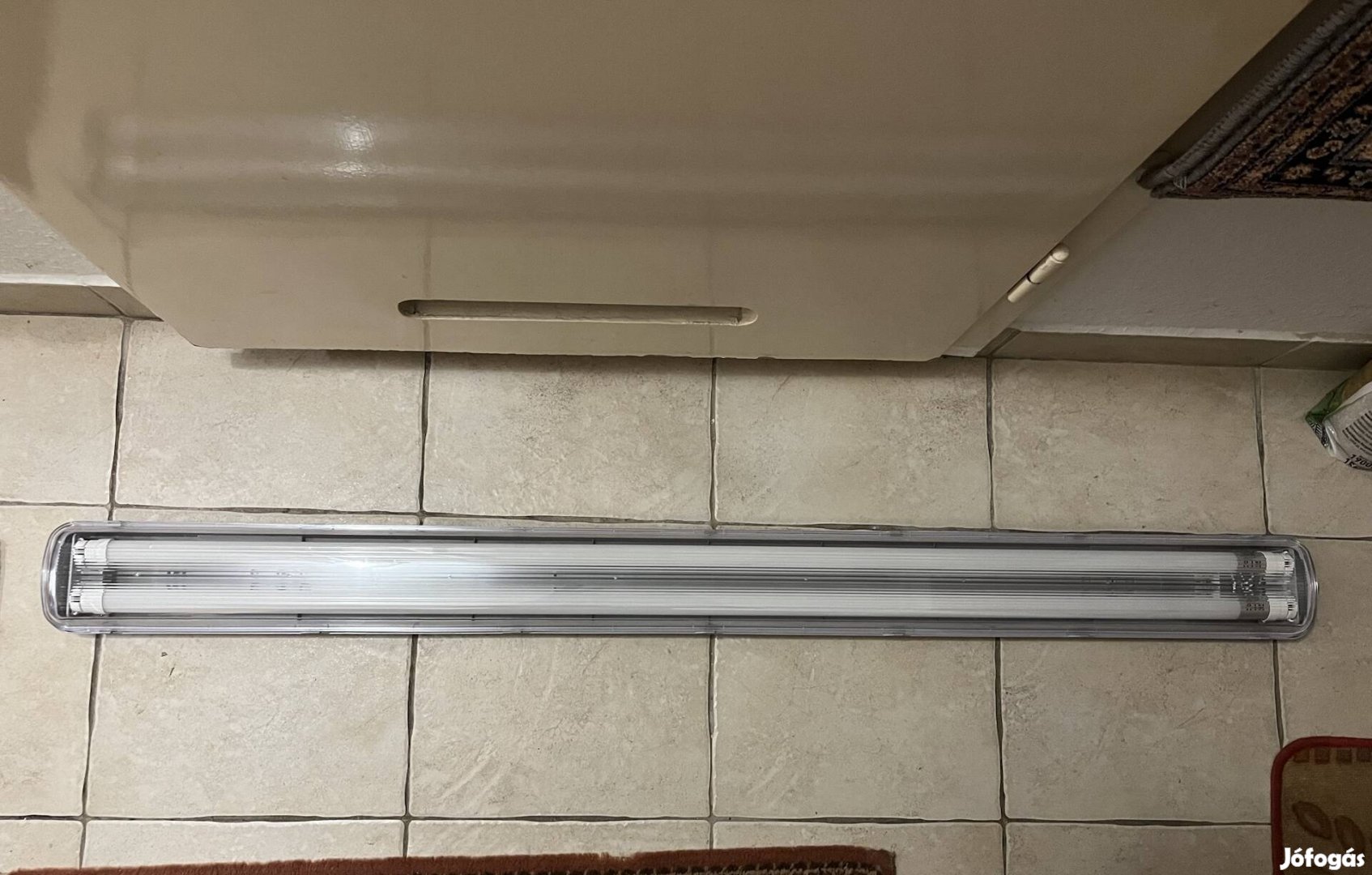 A képen látható mennyezetre szerelhető lámpa eladó. 1 hete vettük újan, de nekünk valamivel hosszabb kellett a konyhába így kicseréltük. Mérete(cm) : 120x12. Két neoncső van benne, 18w-osak.