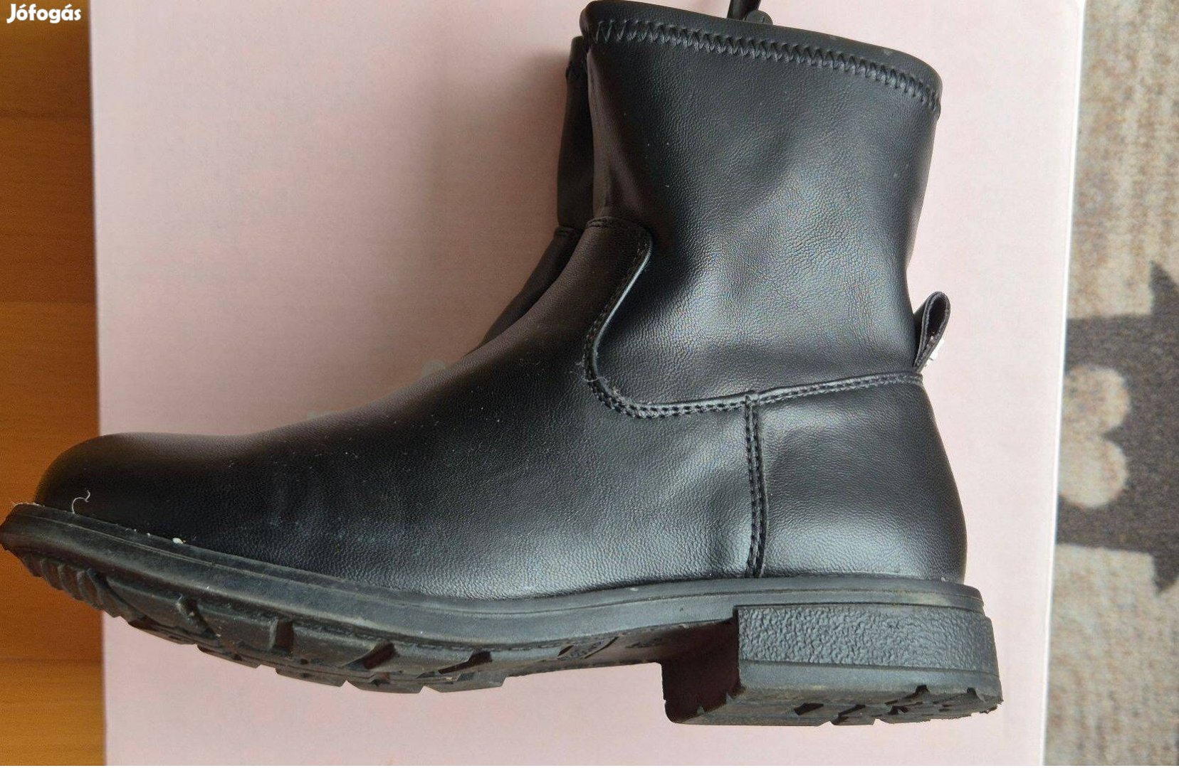 Kiváló állapotban, csak kétszer viselt. Pár nagyon enyhe felületi karcolás látható rajta csak. Talpa kívül-belül új, Semmi kopás nincs. Saját dobozában! Fekete bőr. Márka: Nelly Blu. Belső talphossz kb. 21.2 cm.