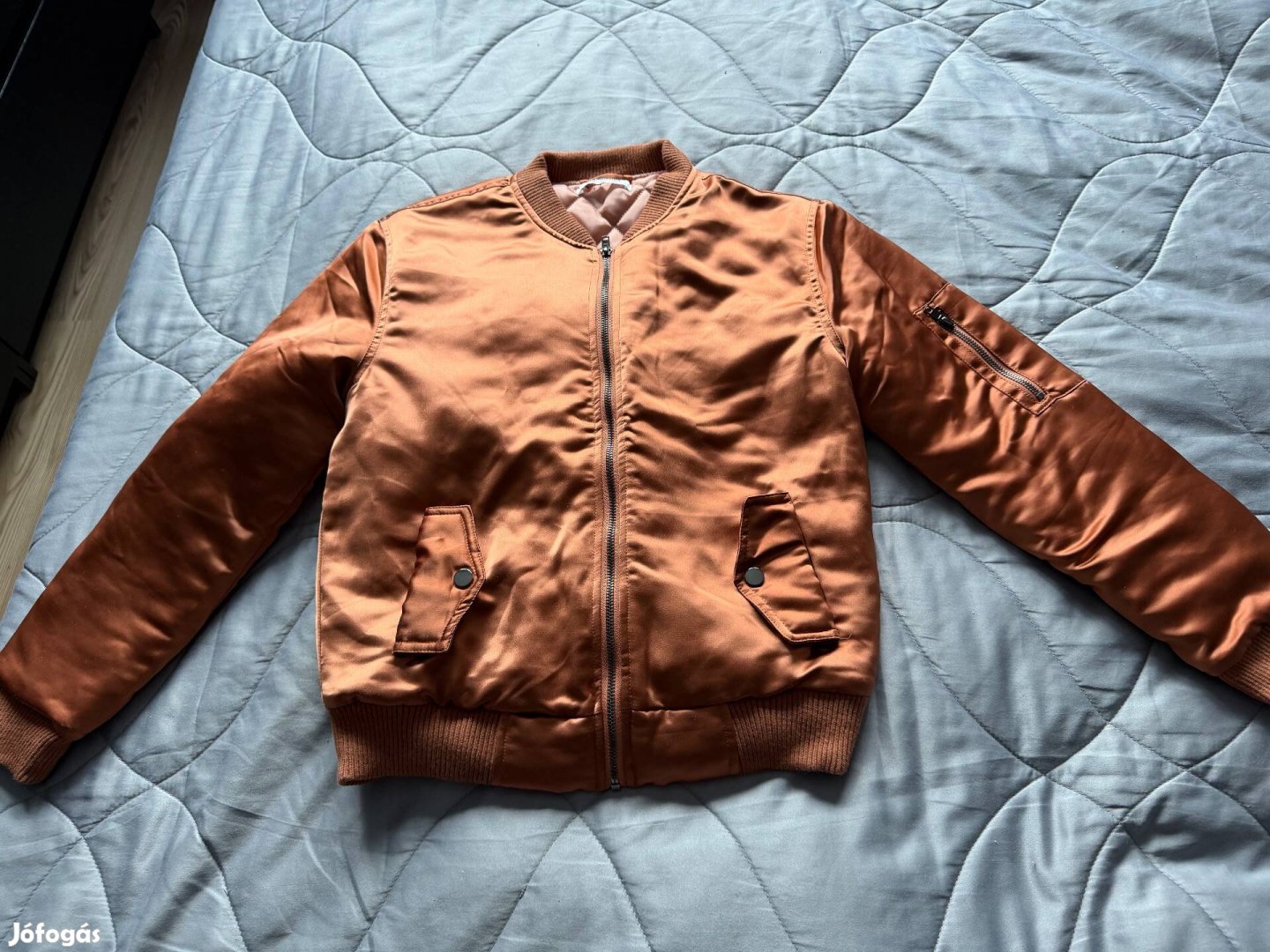 Eladó egy új, fényes anyagú rozsdabarna kabát Budapesten a 12. kerületben