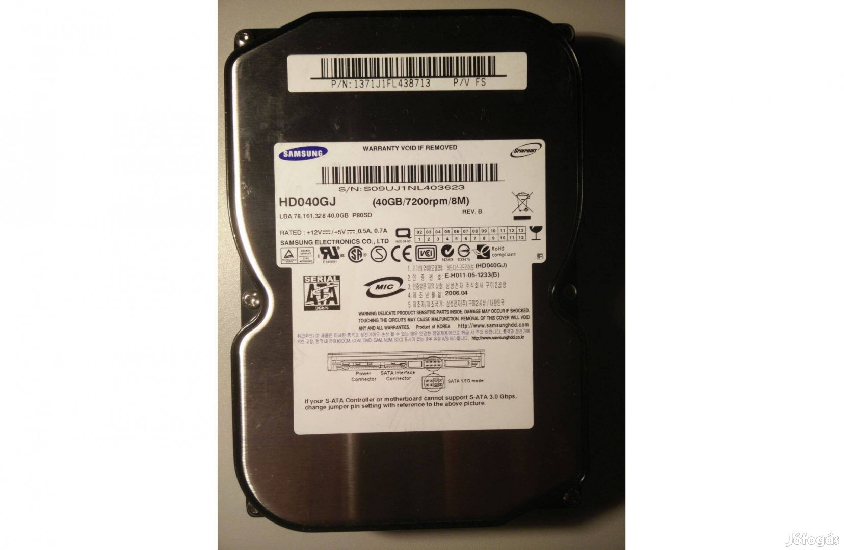 Eladó a képeken látható, asztali számítógépbe vagy dokkolóba való 3,5" 40 GB Samsung HD040GJ 7200 RPM SATA HDD.