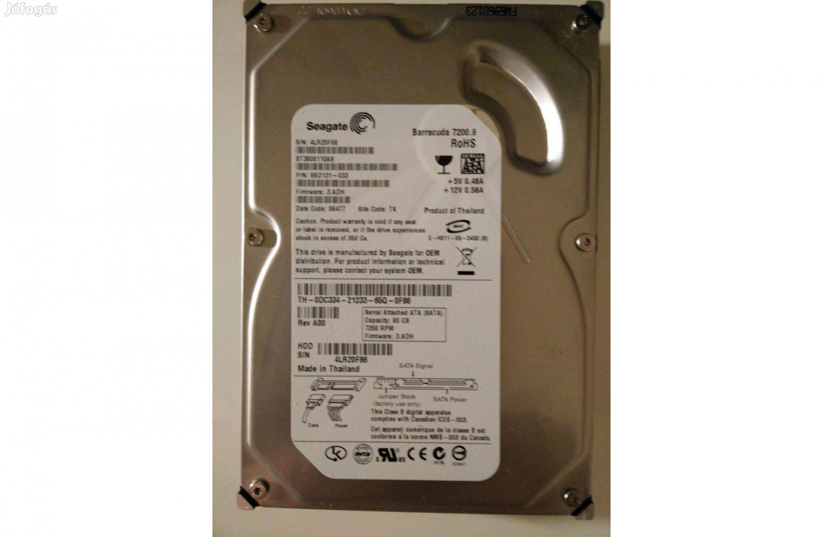 Eladó a képeken látható, asztali számítógépbe vagy dokkolóba való 3,5" 80 GB Seagate Barracuda 7200.9 7200 RPM SATA2 HDD. Mint az a mellékelt diagnosztikai adatokból is látszik, a diszk használt, de jó állapotban van.