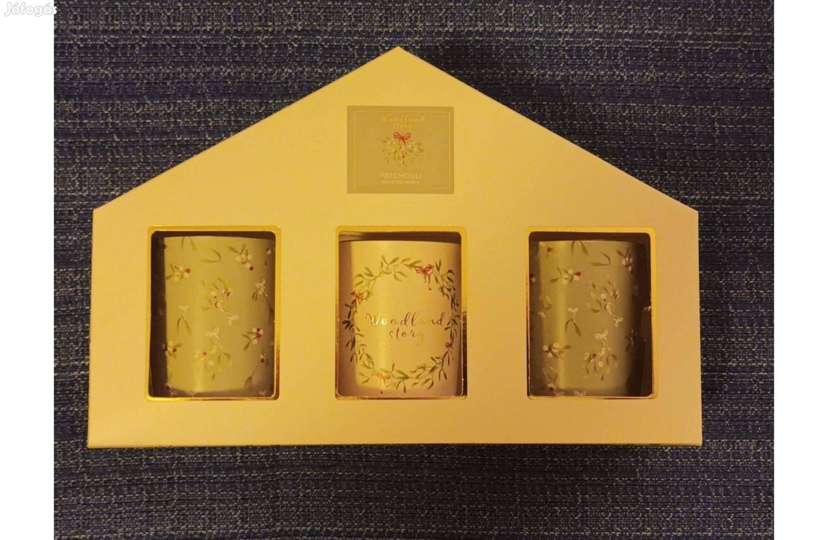 Eladó 3 darabos gyertya szett (pacsuli illatú). Ár: 1500 Ft.