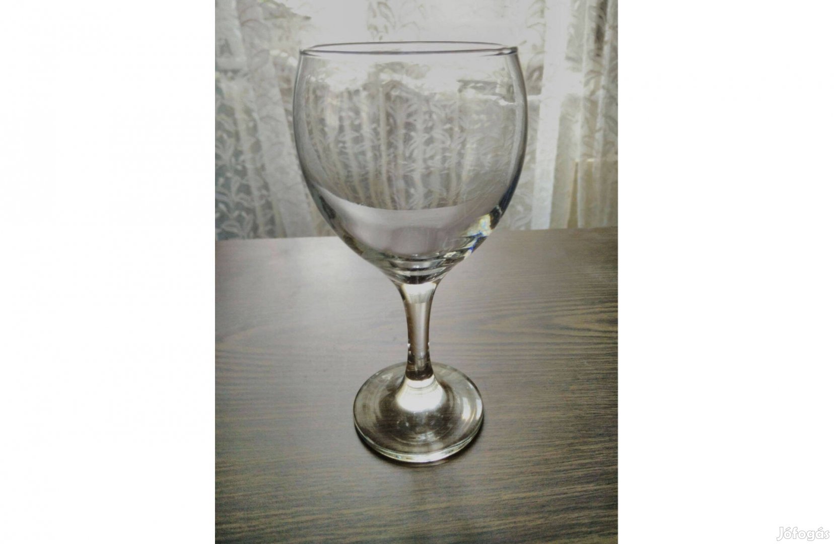 Eladó a képeken látható 3 dl-es talpas boros üvegpohár (kehely). Mint az a képeken is látható valamennyire, a pohár oldala egy kissé karcos.