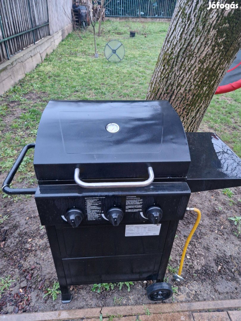 Kihasználatlanság miatt eladó a képeken látható, megbízhatóan működő 3 égős gázüzemű kerti grillsütő. Sütő felület 54x40 cm