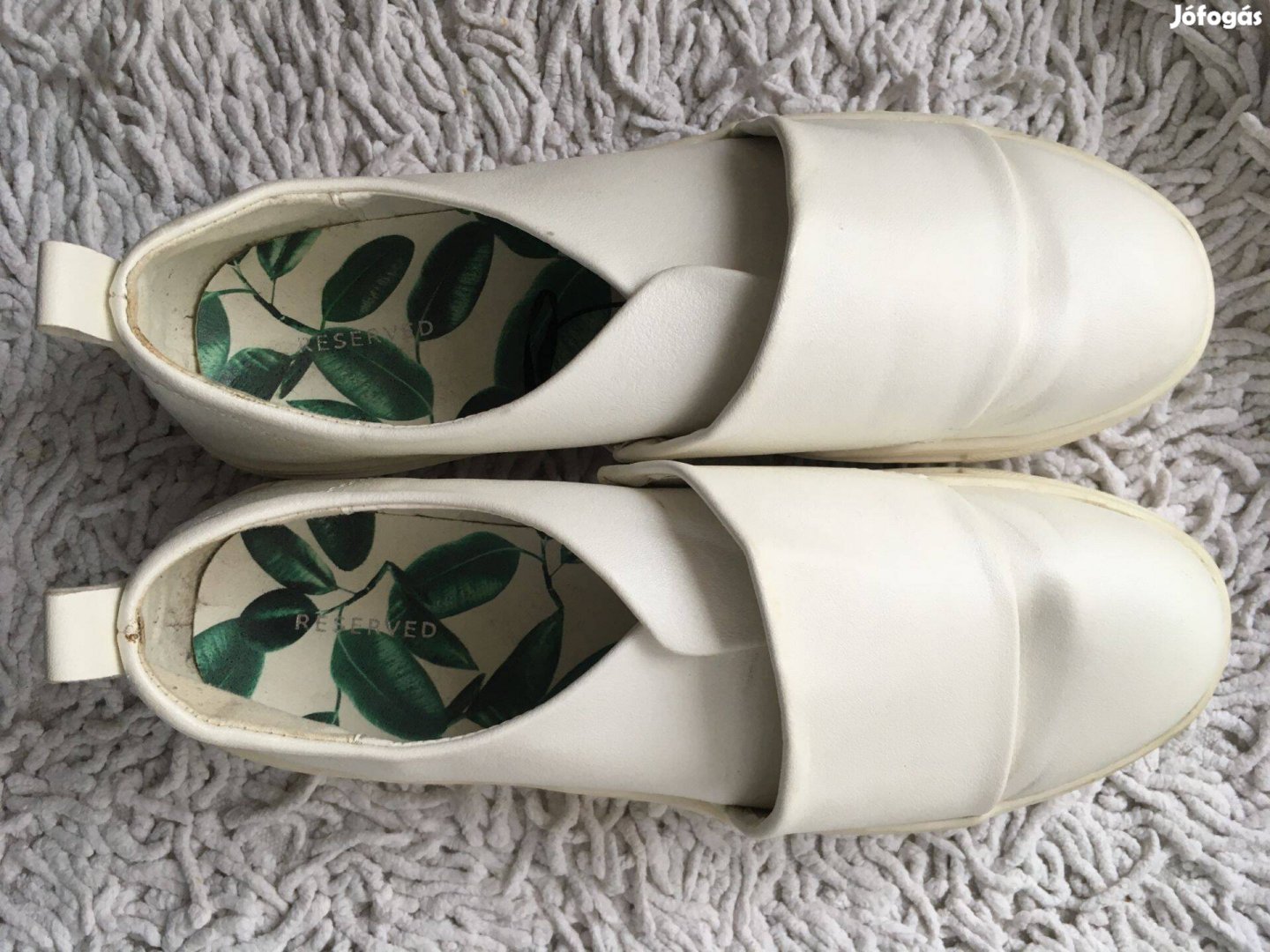 egy zártabb fehér Reserved cipő (cimkeméret 41, de 40-re jó).