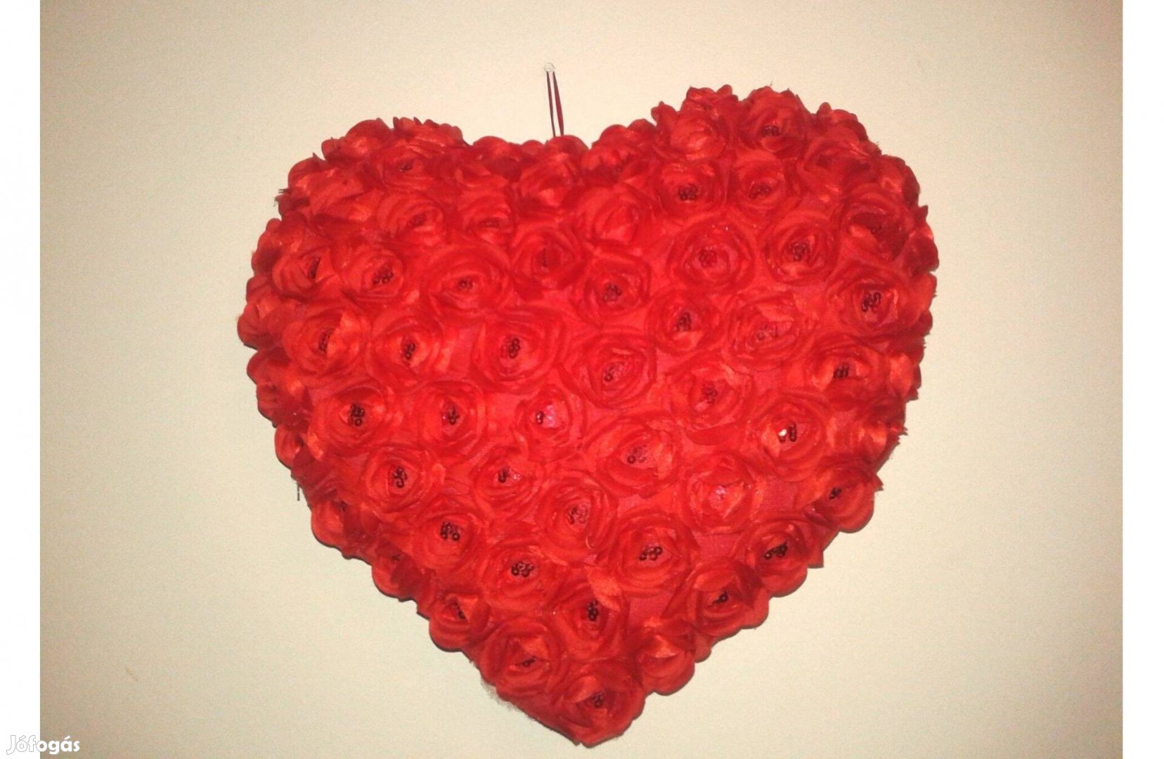 40x37 cm-es csupa rózsás szív párna gyöngyökkel akaszthatós 4200,-Ft