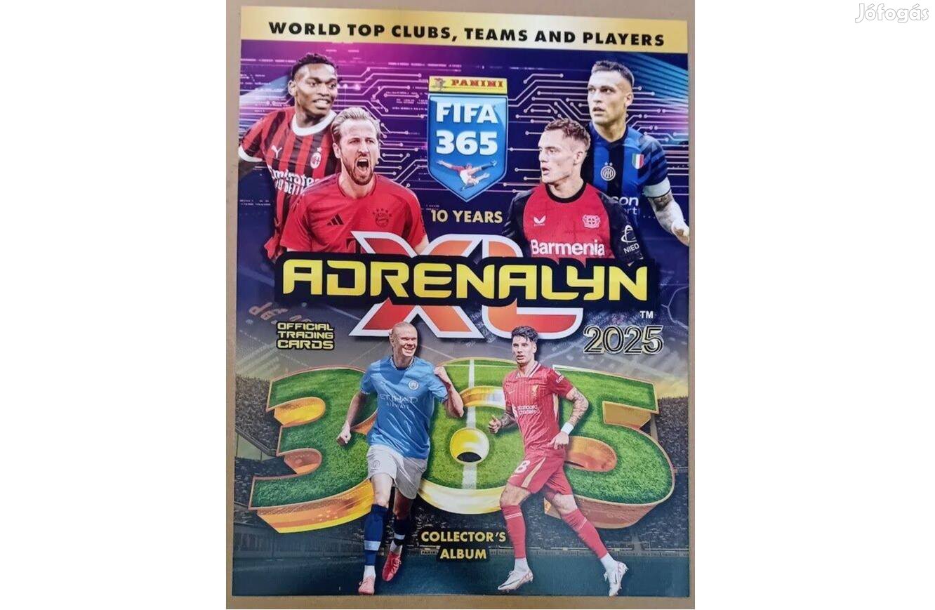 Eladó 441 darab különböző focis kártya együtt, a teljes, hiánytalan számozott alapsor a Panini FIFA 365: 2024-2025 Adrenalyn XL sorozatból a hivatalos albummal együtt.