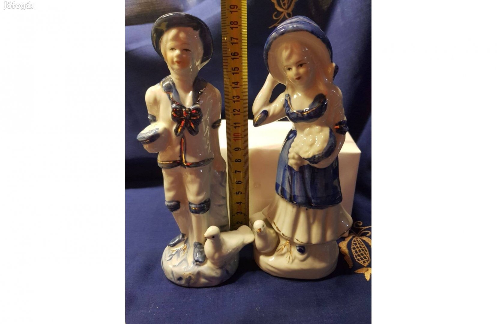 Packeta, Mpl, és személyes átvétel lehetőségével, eladó a képeken látható állapot szerint: két darab porcelán figura egyben. Fiú lány galambokat etet.