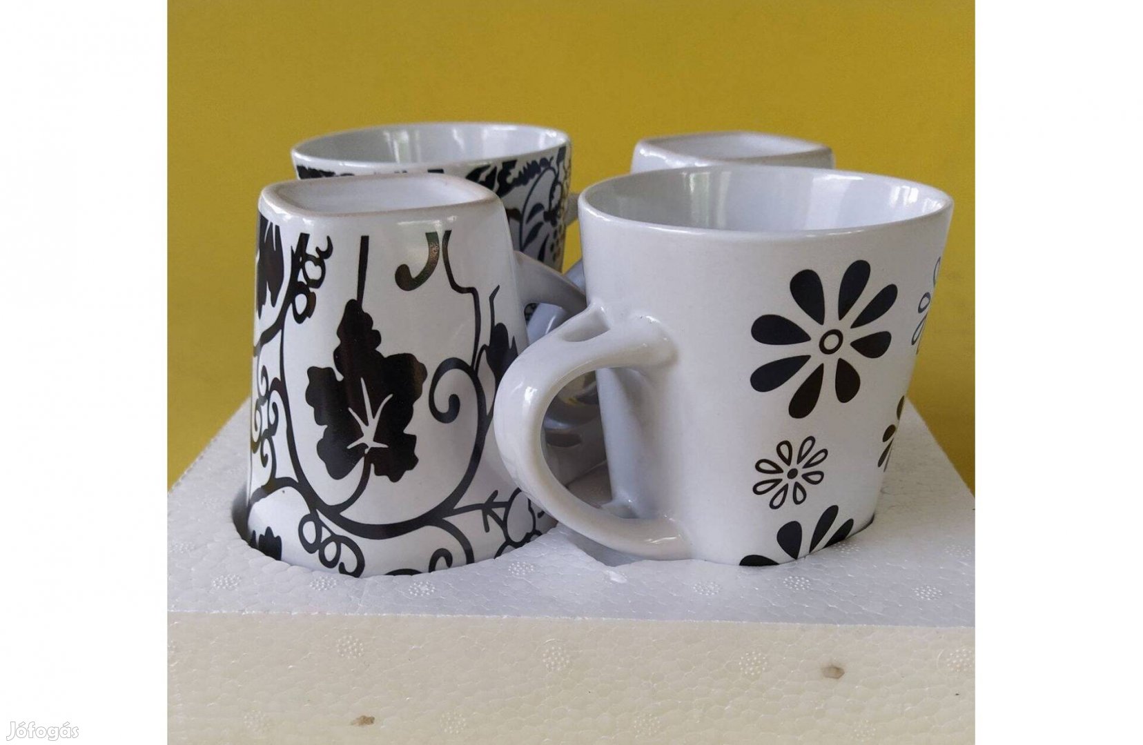 4 db 3,5 dl-es Quelle teás, vagy hosszúkávés csésze 3 db porcelán kanállal (Sajnos a szállításnál 1 db kanál eltörött). Bögre átmérője 9 cm, magassága 11 cm.