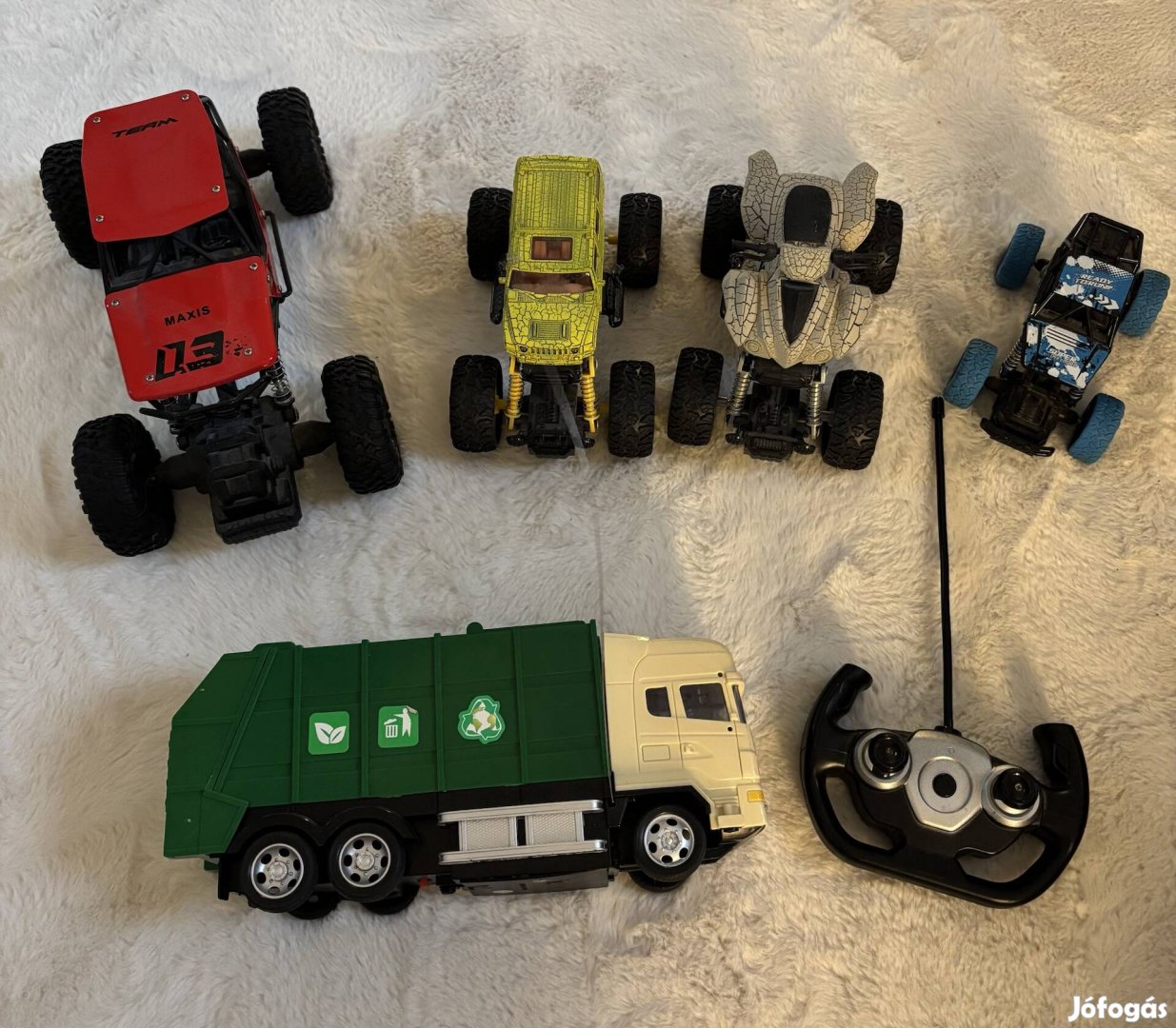 4 db Monster Truck Auto + Távarányítós Kukásautó