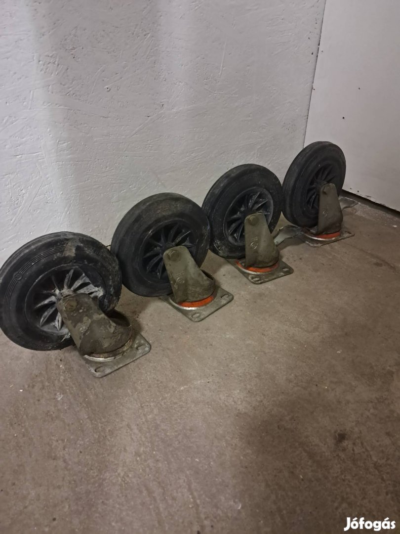 Eladók a képeken látható állapotban lévő nagy teherbírású kerekek.2 db fékezhető, 2 db sima .Mind a 4 bolygós,jók a csapágyak.