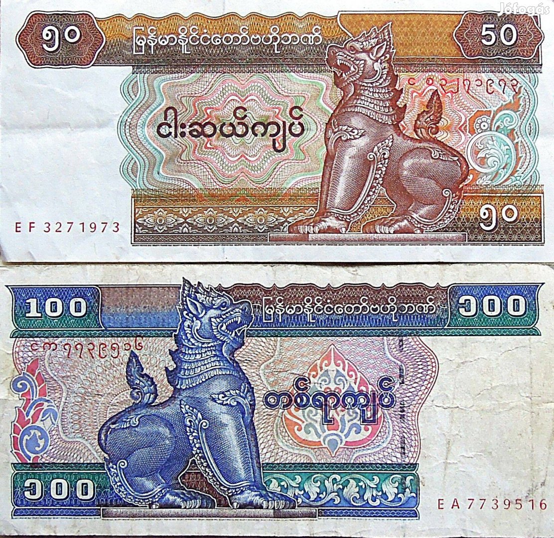 50- 100 Kyats Myanmar Burma bankjegy papírpénz