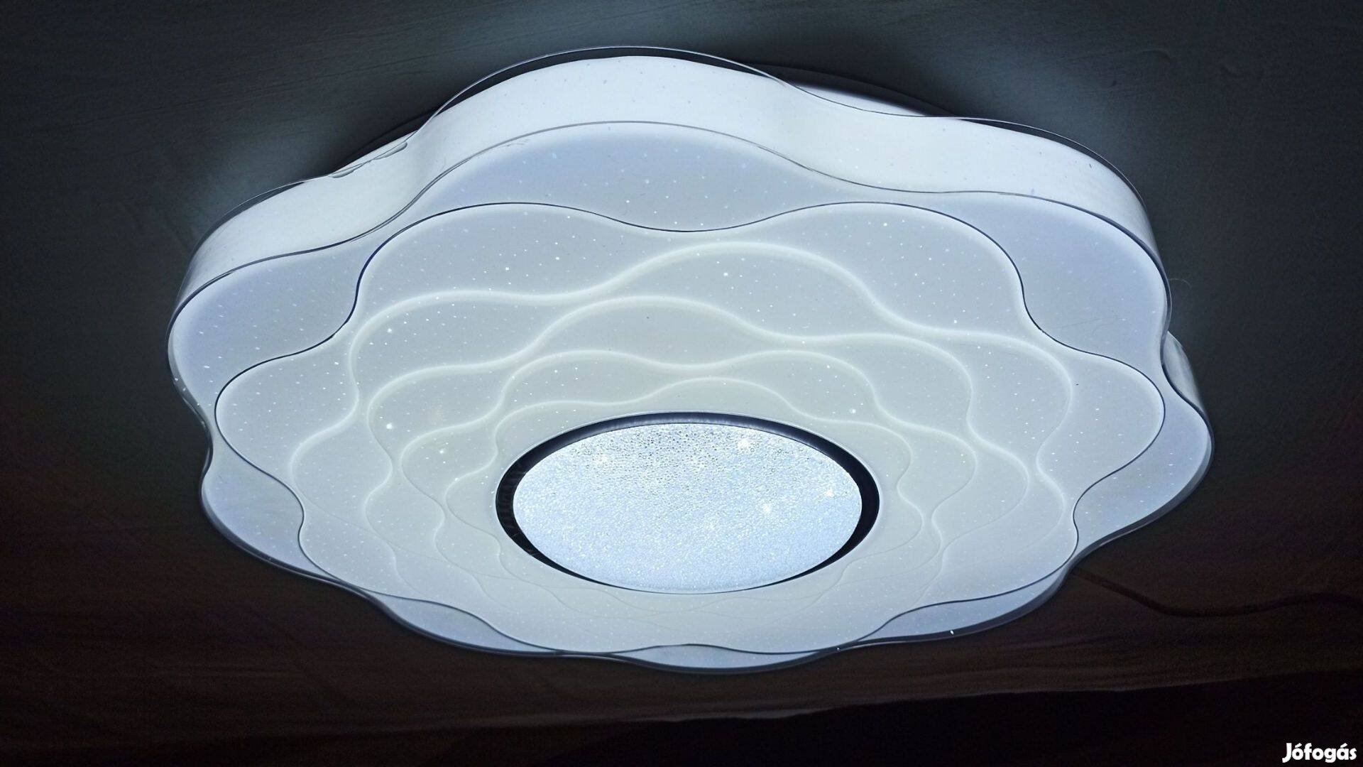 Nagy fényerejű mennyezeti led lámpa. Kerekített nyolcszögletű hullámos díszítéssel. Csillagos ég kinézet középen csillogó felület mely körül tükör karika világítás esetén feketének látszik..