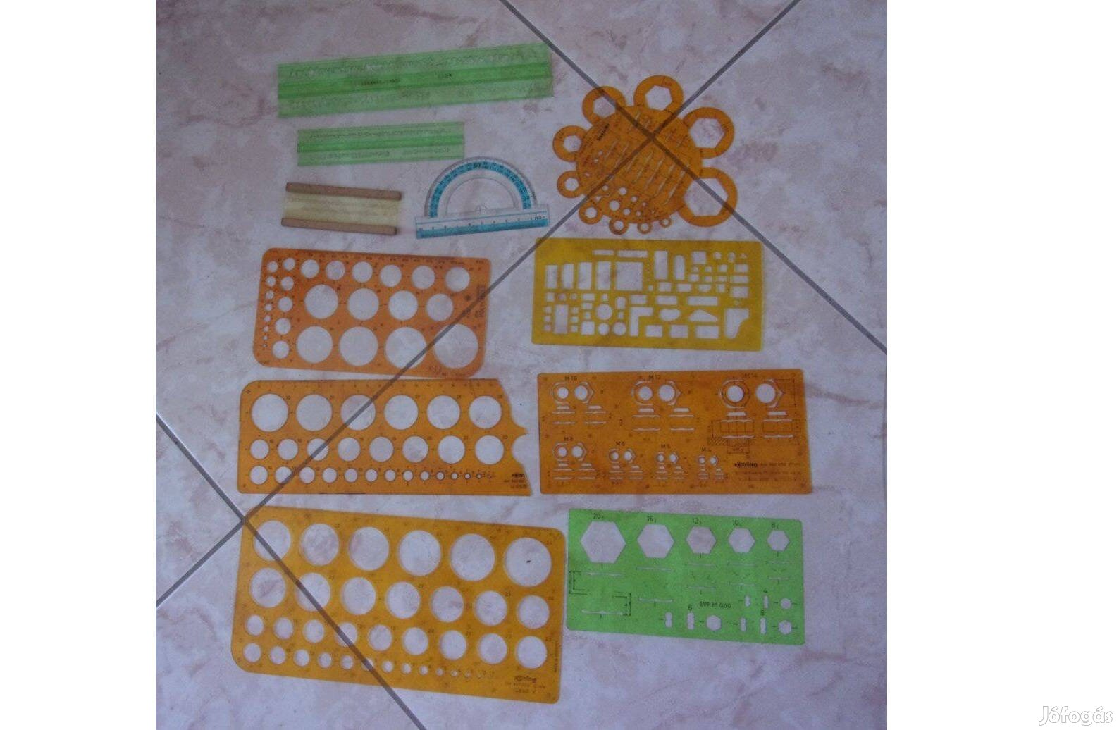 41 féle matematikai eszköz sablon vonalzó szögmérő stb iskolai felszerelés Újpest központ közelében