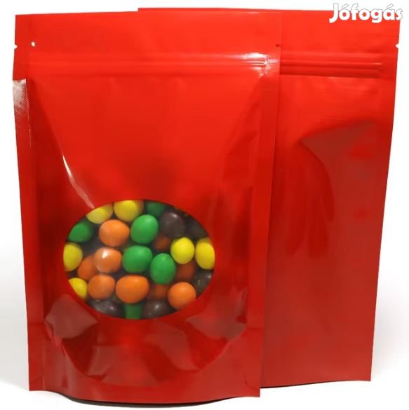 50db. 8,5x13x3cm-es Visszazárható Talpas Tasak Piros (6003) (Kategória: Szines Talpas Zip Lock Mylar Tasakok)<p>50db. 8,5x13x3cm-es Visszazárható Talpas Tasak