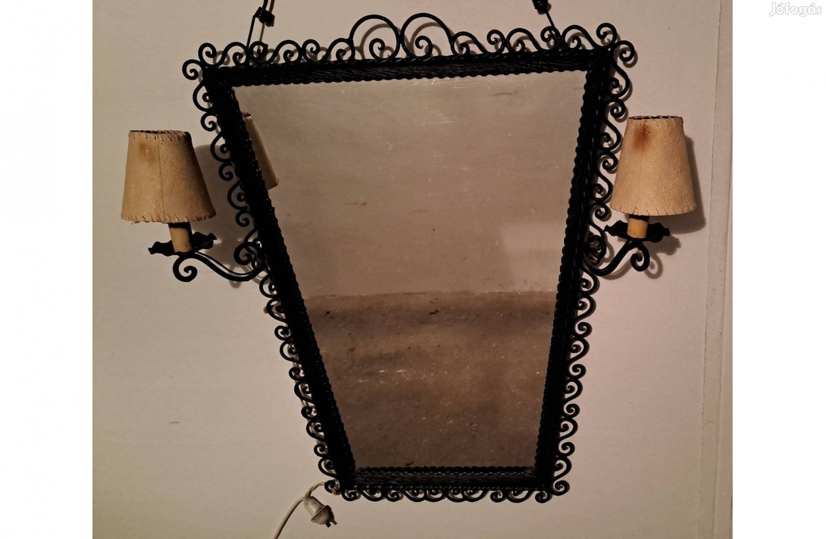 60'-as évekbeli retro kovácsoltvas tükör, falikarokkal