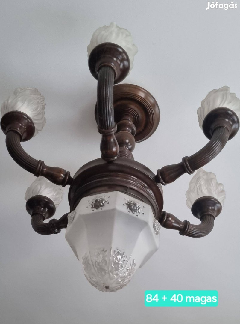 Régi, jó állapotú, faragott fa csillár lángbúrákkal eladó. Magassága 84 cm + 40 centivel hosszabbítható.