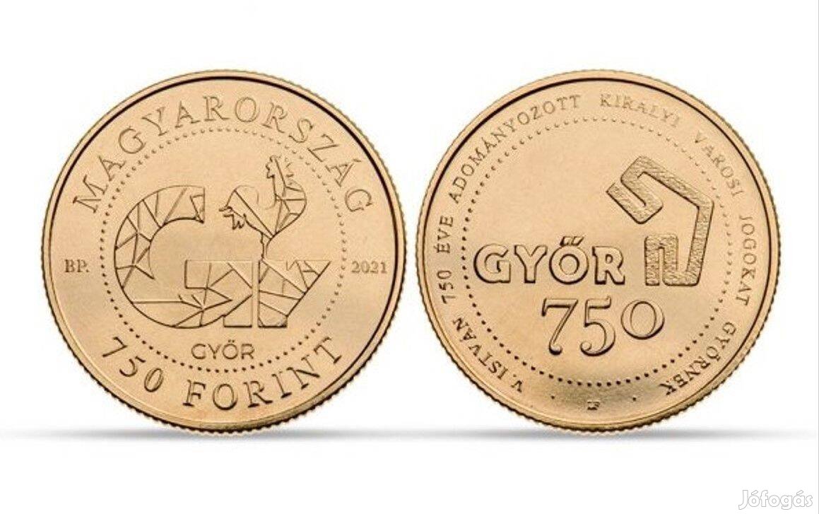Eladásra kínálok három darab; 750 éves Győr /BU/ 2021/ színesfém emlékérmét; kapszulában } mind háromhoz külön szórólappal.