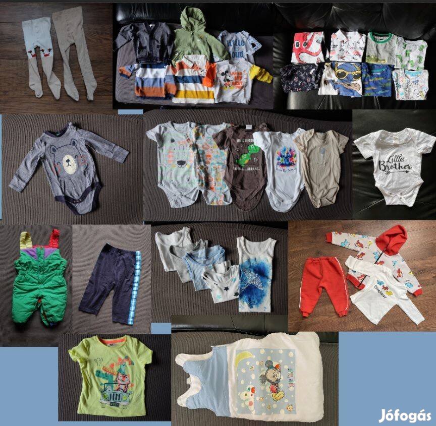Eladó kiváló állapotban lévő 80-as méretű babaruhacsomag. Van ami csak mosva volt, de végül nem használtuk, mert gyorsan átnőtte a fiam.