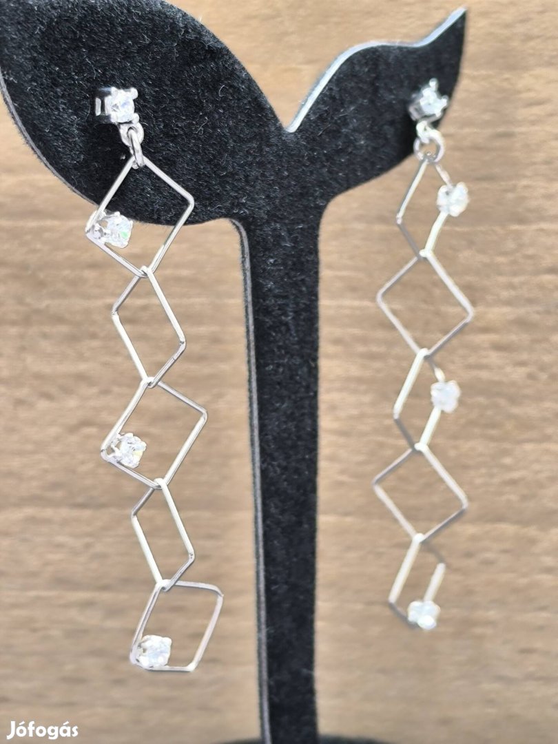 Jelzett 925-ös lógós, négyzetekből álló, köves fülbevaló pár.