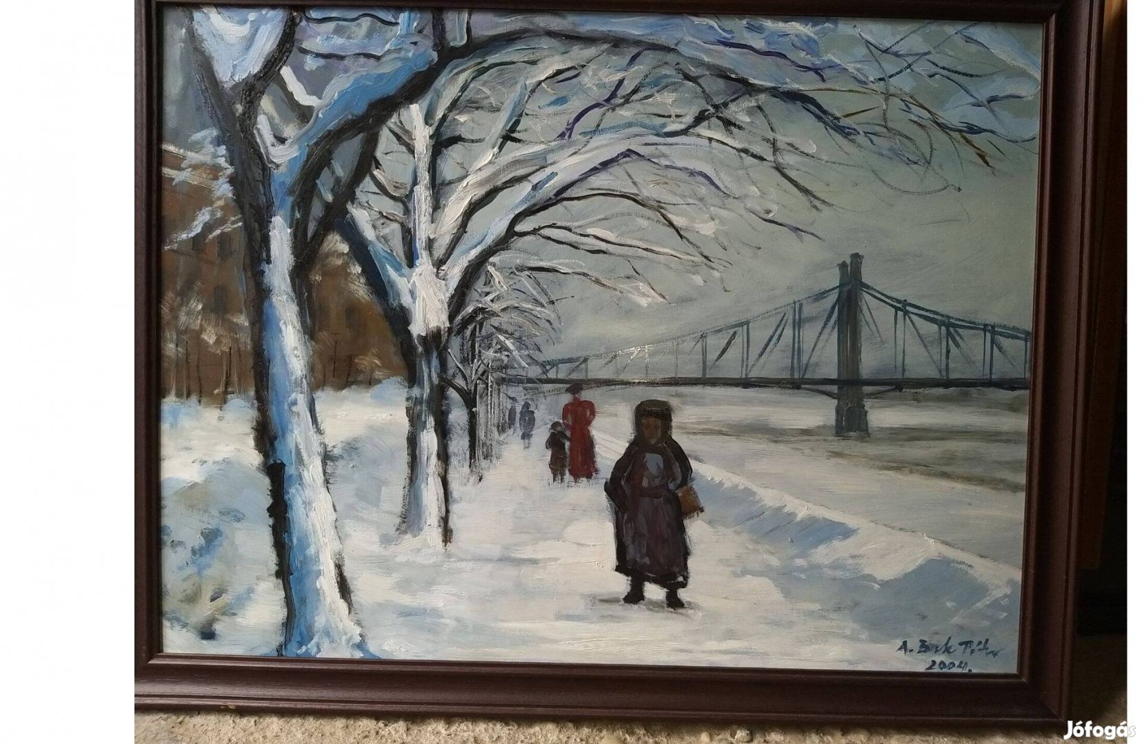 Eladó A. Bak Péter festőművész 2004 -ben készült Téli Dunapart című festménye . mérete : 45 x 60 cm