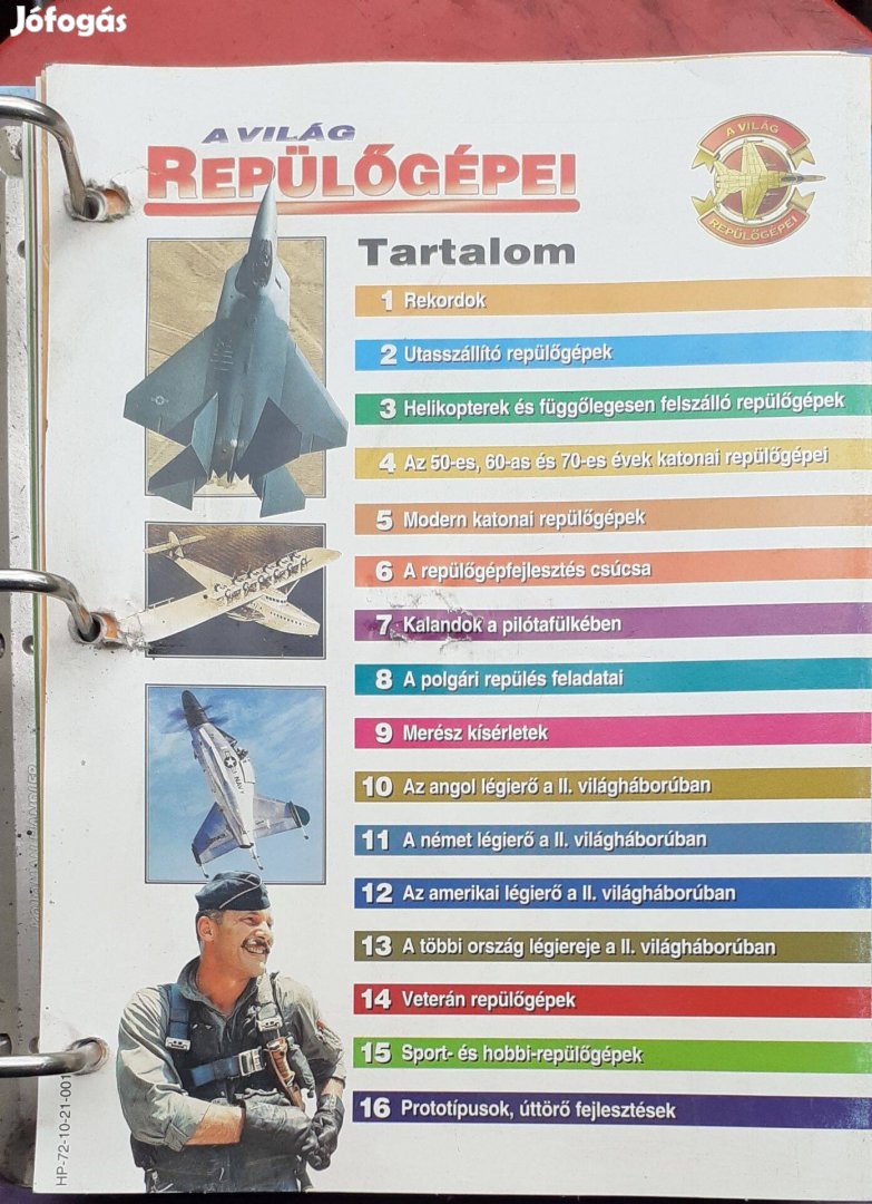 A képen látható A világ repülőgépei című könyv kifogástalan állapotban, gyűjteményből eladó. Átvehető személyesen Bp. 16. ker-ben vagy postai úton és más csomagküldő szolgálattal. Számla, garancia nincs. Kérem, hogy telefonon egyeztessünk.