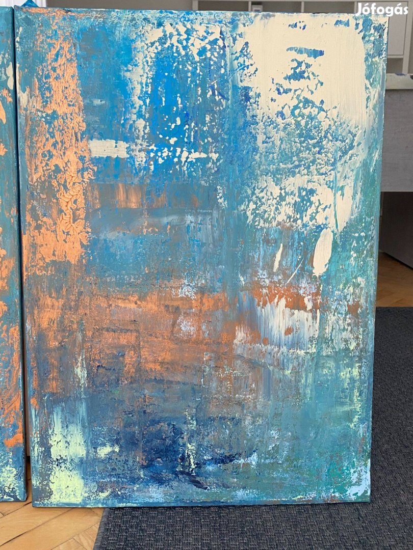 50x70 cm-es keretre feszített vászonra készített akril festmény. Metál réz és kék árnyalatok.