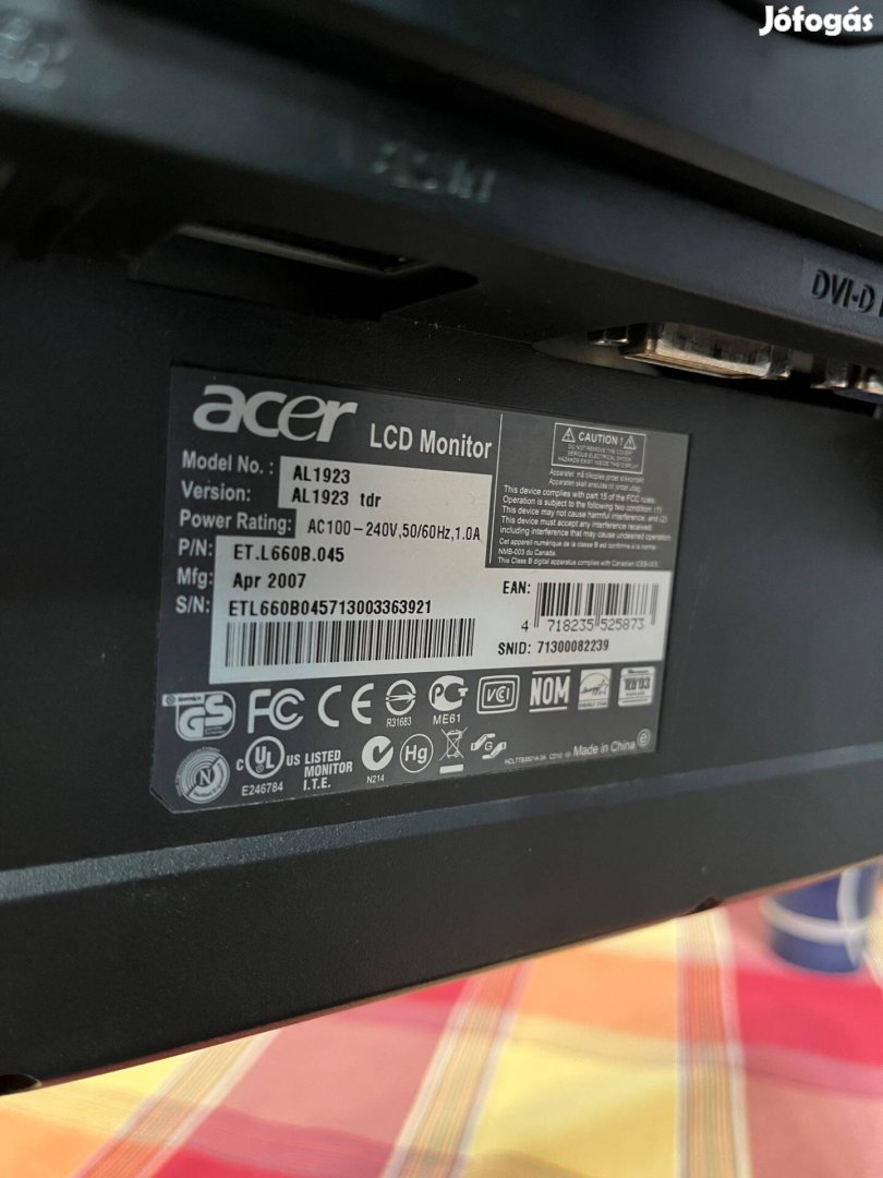 Eladó LCD monitor, minden adatát fotóztam. VGA bemenete van.