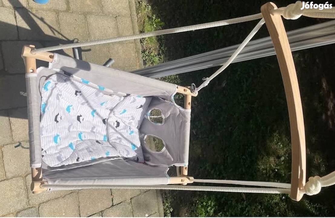 Eladó egy használt, de kifogástalan állapotú, frissen mosott, eredeti Adamo Chaplin babahinta szürke-fehér-világoskék színekben, minden tartozékával (2 db hintarugó 0-10 és 10-15 kg terhelhetőséggel, színben illő kopp-stop fejvédő, eredeti fali kapmó, eredeti doboz). A teljes szett új ára közel 70 e Ft. Személyesen Bp. 12. Vagy 5. kerületben