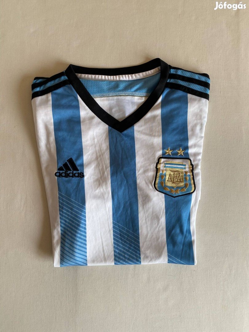 Eladó Adidas Argentína 2014 válogatott hazai mez, kék-fehér, hátulsó kis print a nyakán lekopott, ezen kívül kiváló állapotú, M-es méretben.