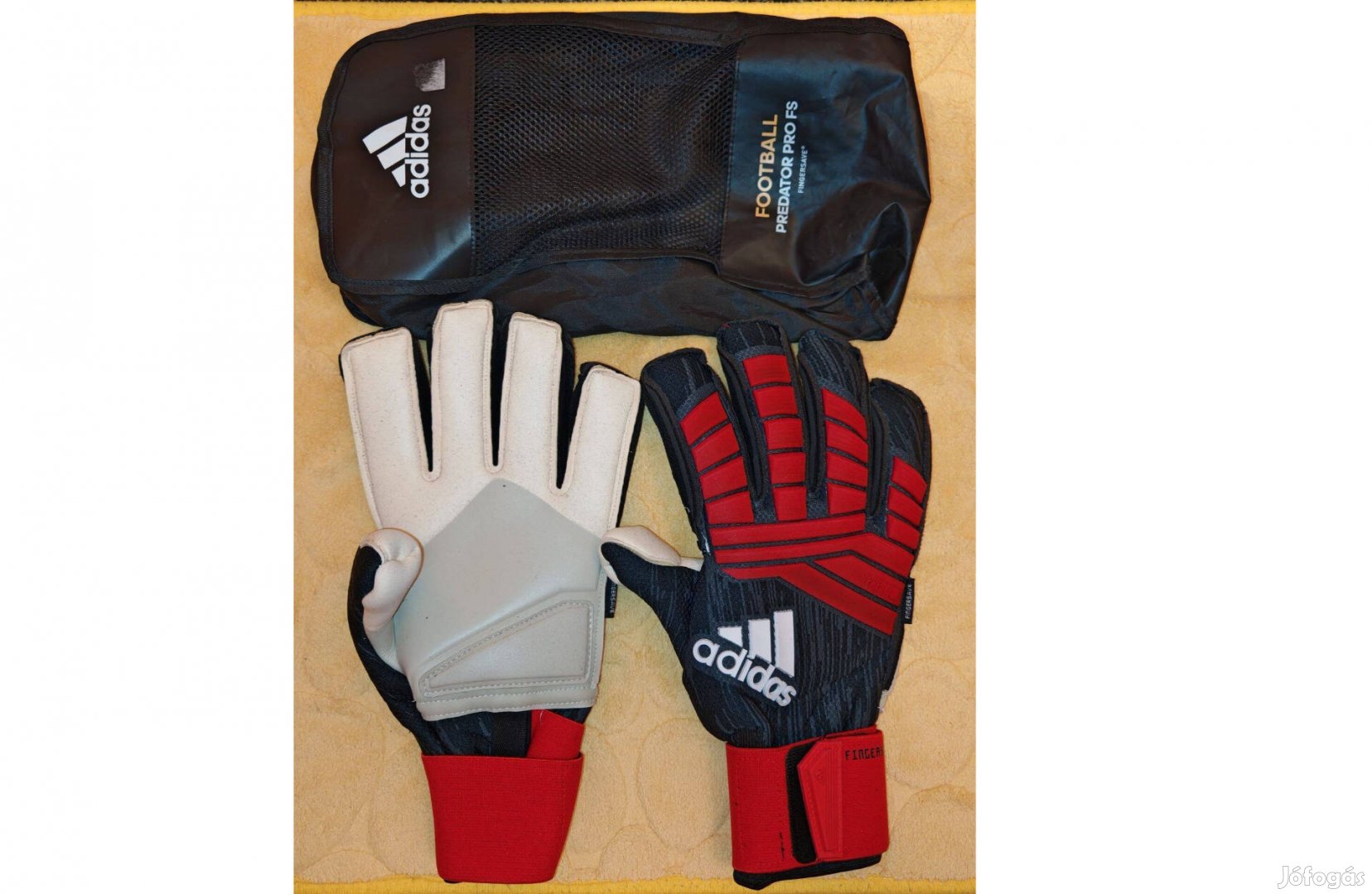 Adidas Predator Pro fekete piros ujjmerevítős kapuskesztyű táskával
