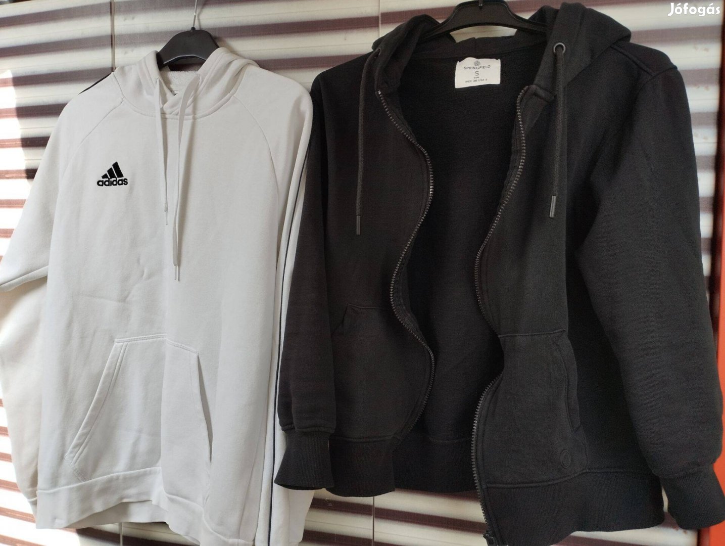 Eladó a képeken látható S-es méretű fehér adidas + fekete springfield púlóver jó állapotban. A fehér sokkal fehérebb, csak a fotón nem látszik jól.