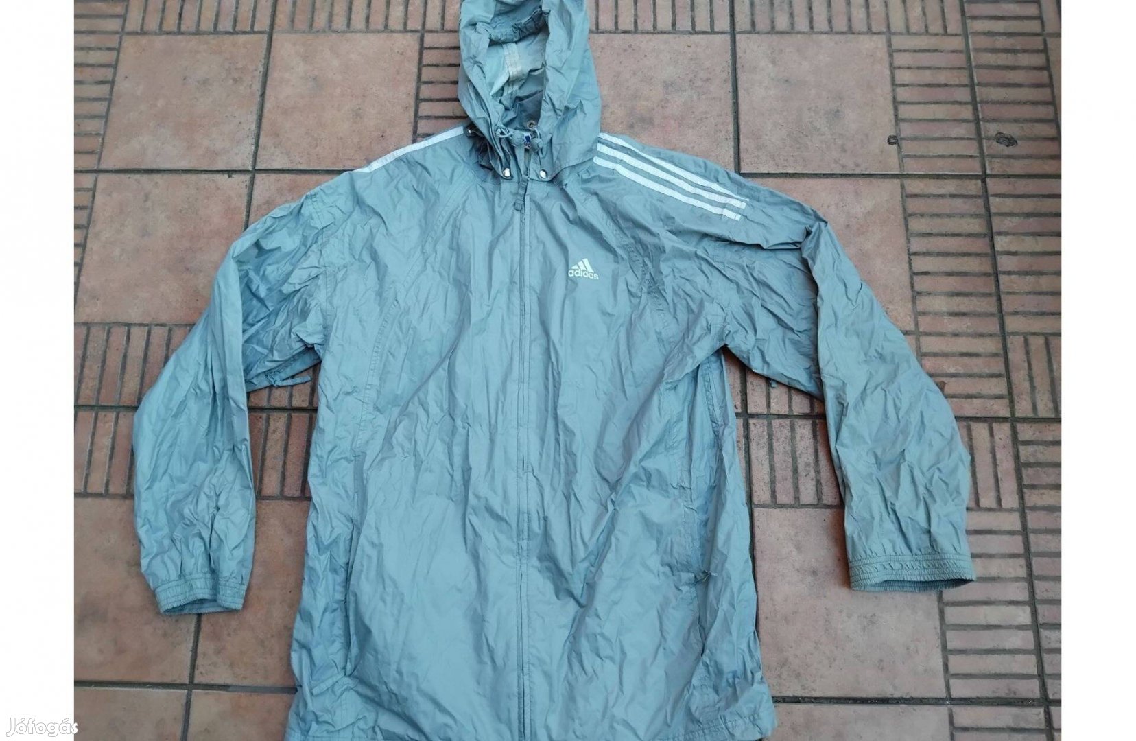 Eladó egyeredeti Adidas,végig cipzáros és tépőzáras,levehető kapucnis, gumírozott ujjvégű és állítható derekú,hónalj szellőzős vízálló esőkabát ,beleirt L-es