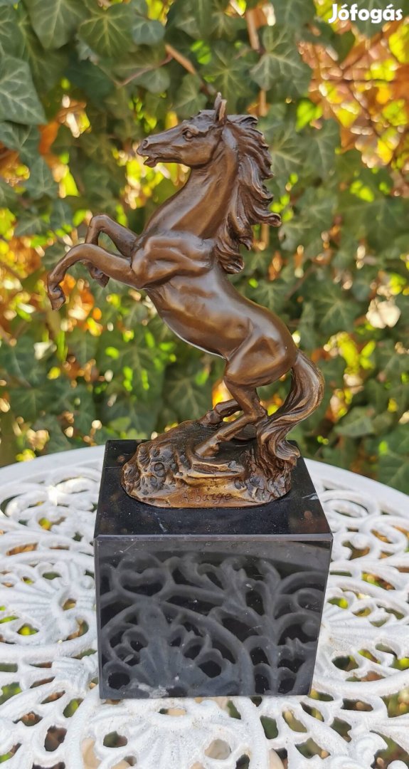 bronz szobor, mérete: 21cm magas, 7,5cm széles, 10,5cm hosszú márvány talpazaton, hibátlan állapotban.