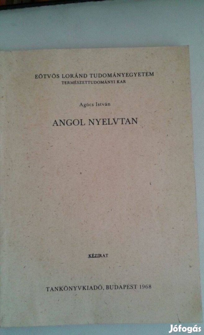 Eladó a képen látható Angol nyelvtan könyv (Agócs István; Tankönyvkiadó, 1968).