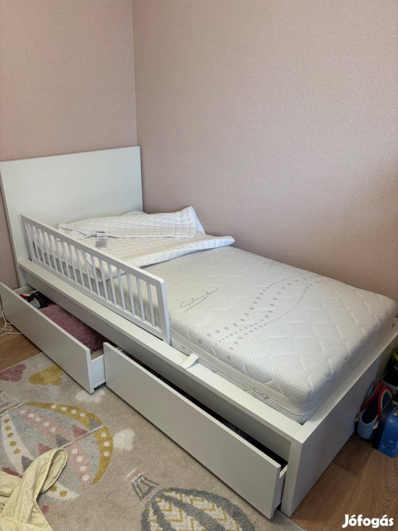 Eladó Ikeas ágyneműtartós ágykeret, ágyráccsal és matraccal együtt (+matracvédő és leesés gátló). Az ágy típusa a képek között található, a matrac pedig Jykes (extra kemény). Leesés gátló szabadon kivehető a matrac alól.