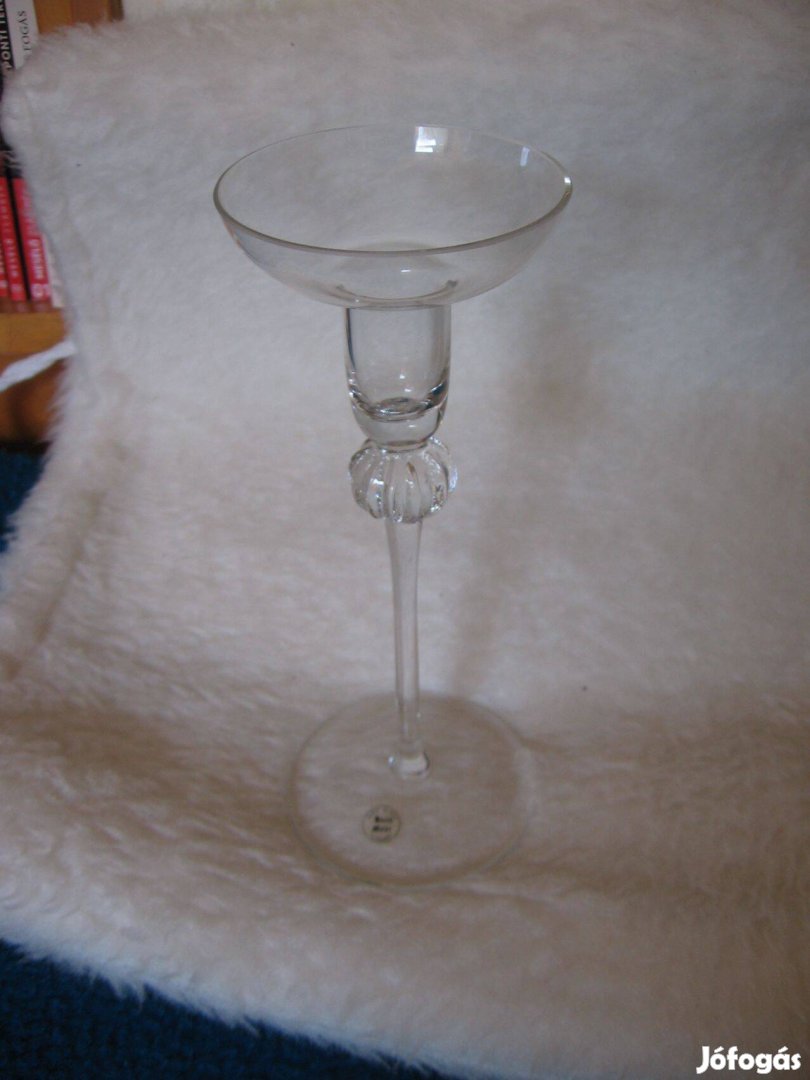Kb.1 cm átmérőjű gyertya 3 cm mélyen helyezhető bele, így a hosszú gyertyák is stabilan állnak benne. Teljes külső mérete: 21 cm magas, 10 cm átmérővel. Új.