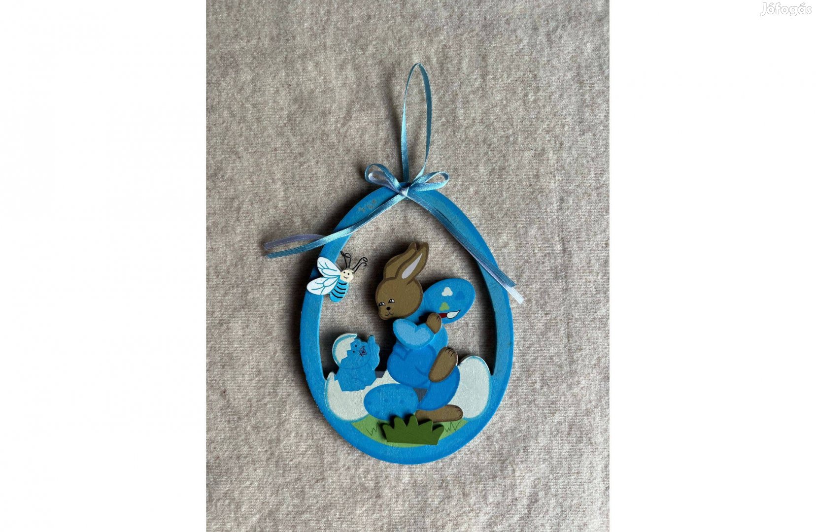 Kiváló állapotban lévő, újszerű húsvéti dekoráció ajtóra, kedves kis nyuszi figurával eladó, A dekoráció fából készült, felakaszthatós.