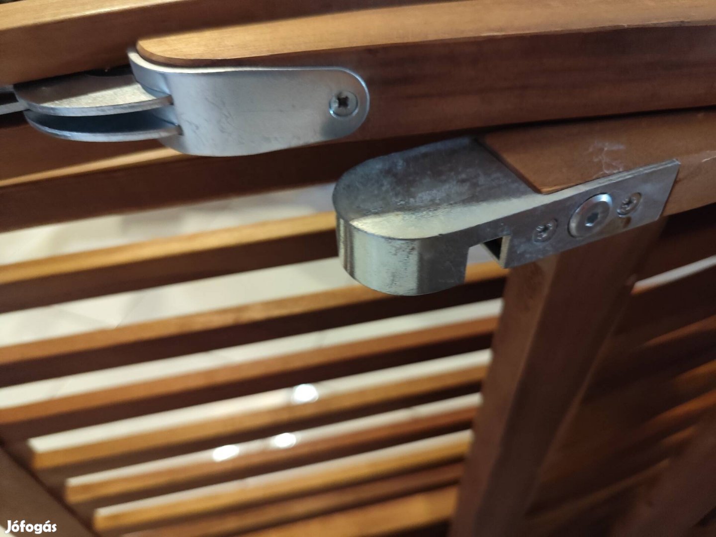 Akácfa ,olajjal kezelt, állítható karfával, összecsukható napozóágy eladó.Labtartó levehető, újszerű allapotban.Mosható huzattal.180x50 cm.