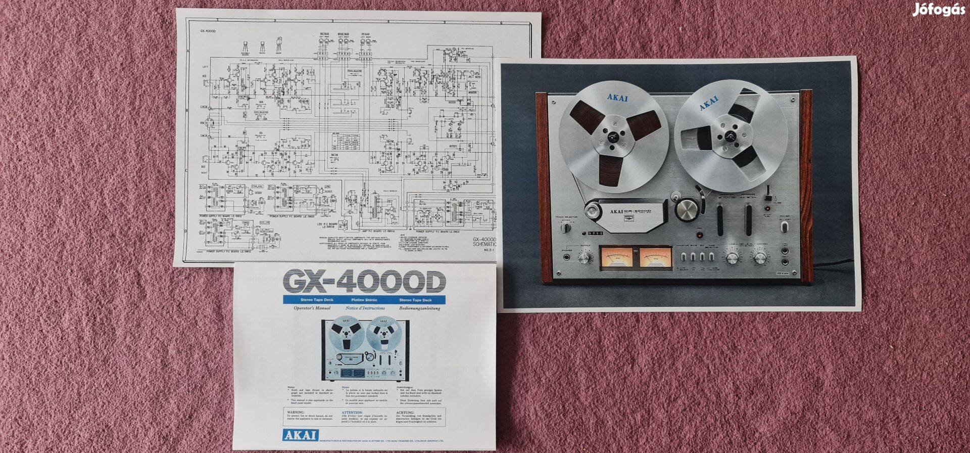 Eladó egy Akai Gx-4000D magnó használati útmutató + magyar nyelvű melléklet + kapcsolási rajz.