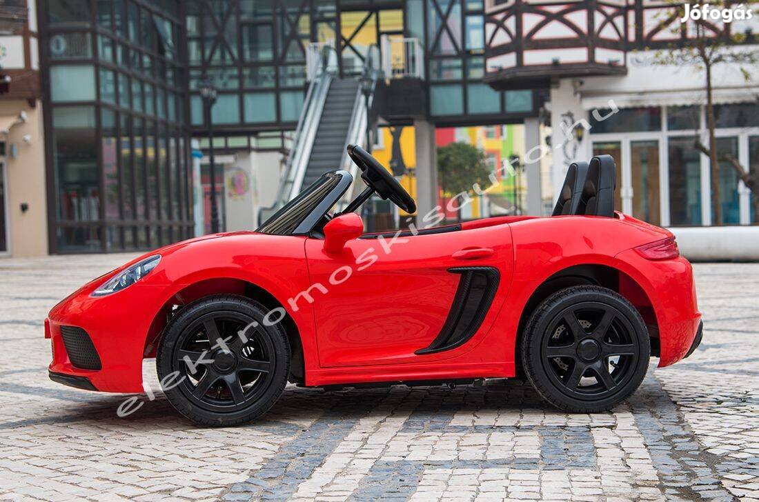 Óriás 2 Személyes Porsche hasonmás 24V elektromos kisautó, állítható kormány magassággal, Bluetooth+MP3 csatlakoztatással, Puha Kerekekkel, tárcsa fékkel, stb.