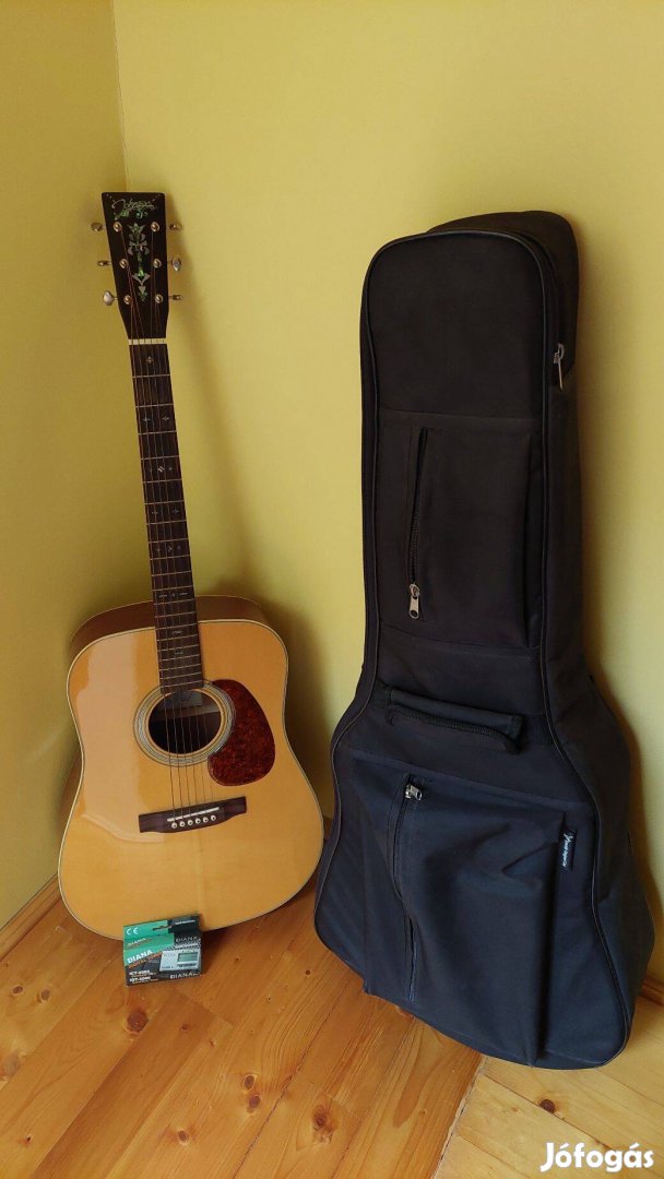Eladó a képen látható Johnson JD16 akusztikus gitár, tokkal, hangológéppel, pengetőkkel. 2006-os évjárat.