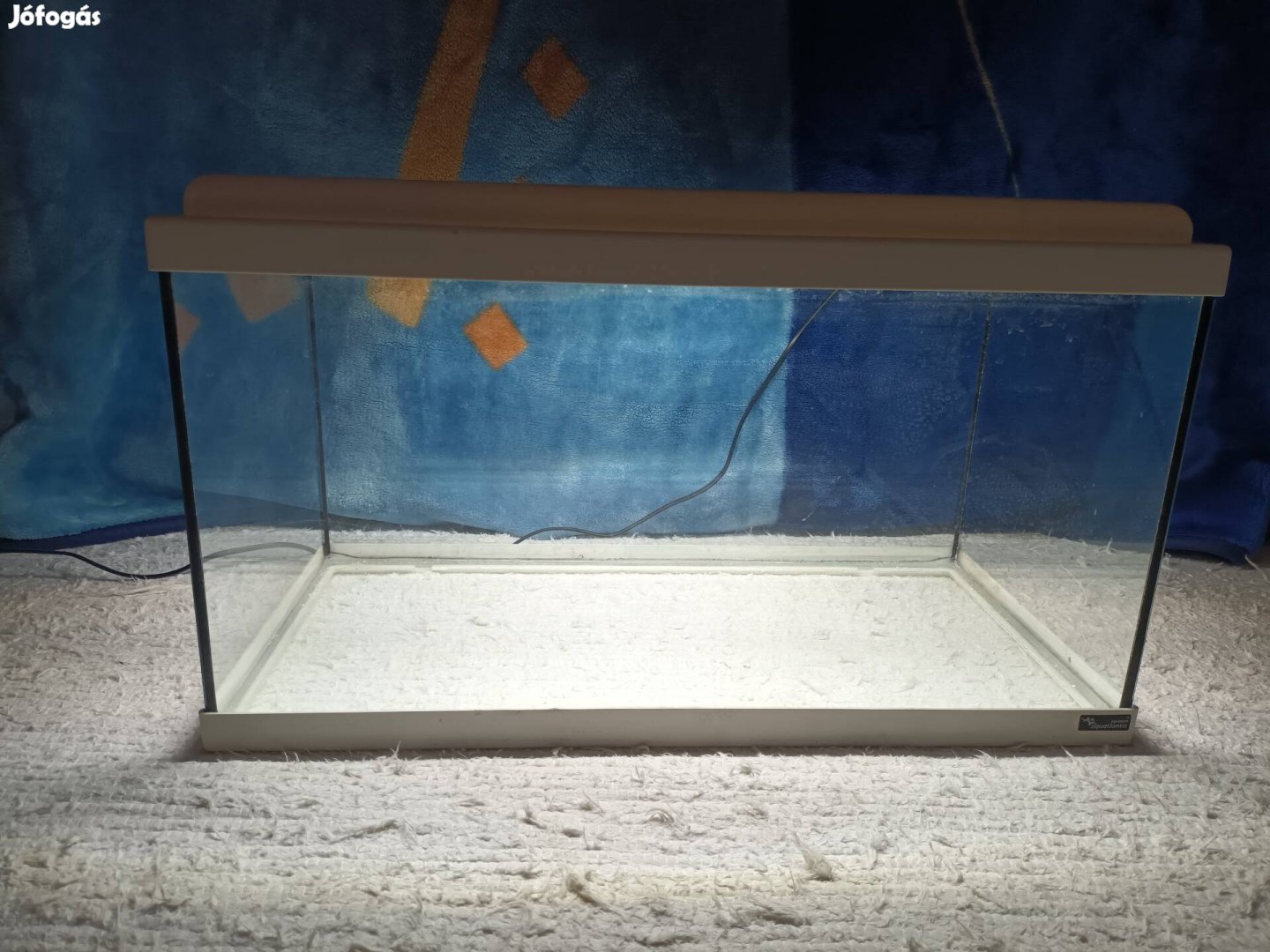 -Akvárium(60literes, 60x30x35): fedett, ledes megvilágítással, szellőzők és etető nyílás a tetején.