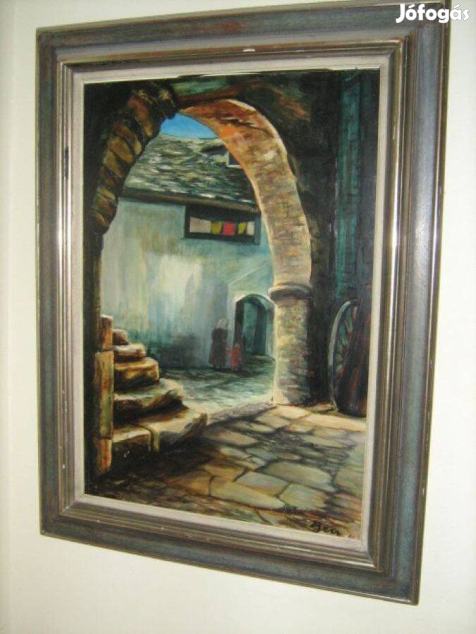Eladó a képen látható svájci galériából származó, mély tónusú, kiváló denzitású, szignós (Ben) olajfestmény. Címe: Anconai utca részlet(Olaszország).