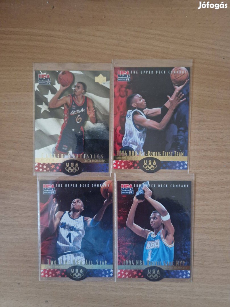 Anfernee Hardaway Upper Deck 1995-96 USA Team kosaras kártyák 4db