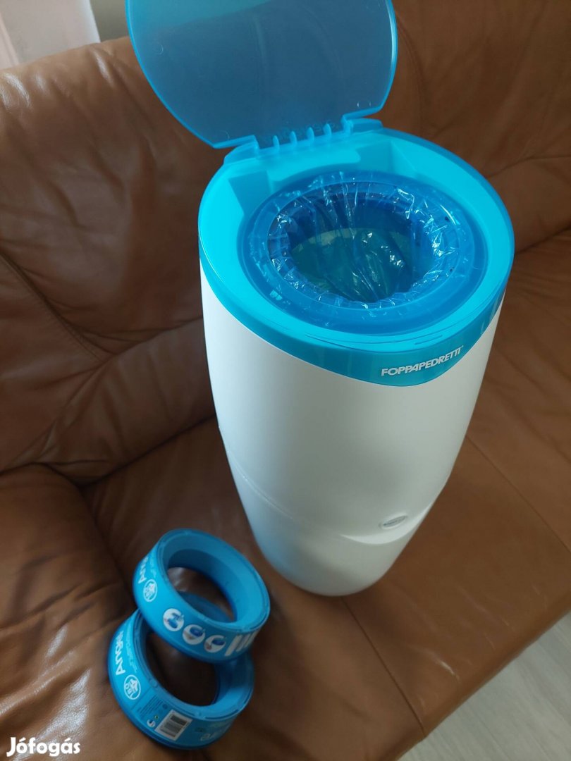 Teljesen új, sosem használt pelenka szemetes eladó. Normál kerek Angelcare utántöltő kell hozzá. Két bontatlan utántöltőt is adok hozzá.