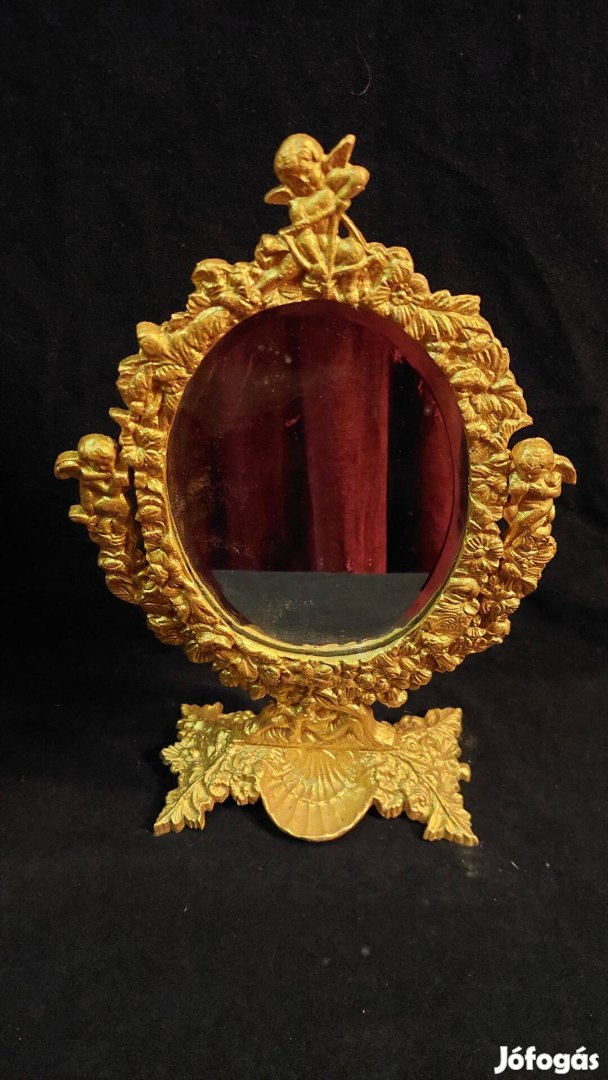 Angyalkás, réz, asztali billenő tükör