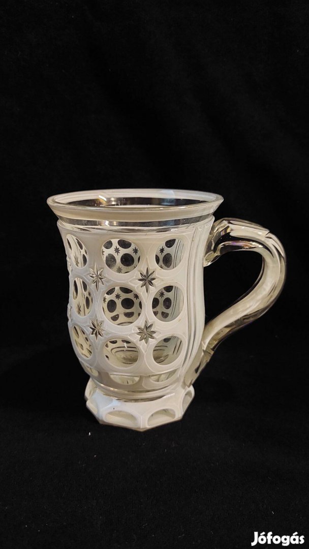 Antik Biedermeier fehér többrétegű üveg pohár füllel