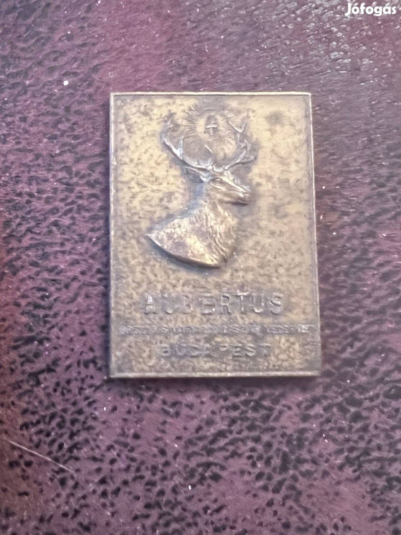 Ritka, gyűjtői darab: Hubertus bronz emlékplakett, melyet a budapesti Hubertus Országos Magyar Vadászati Védegylet bocsáthatott ki. A plaketten Szent Hubertus szarvasa látható, agancsai között a fénylő kereszttel.
