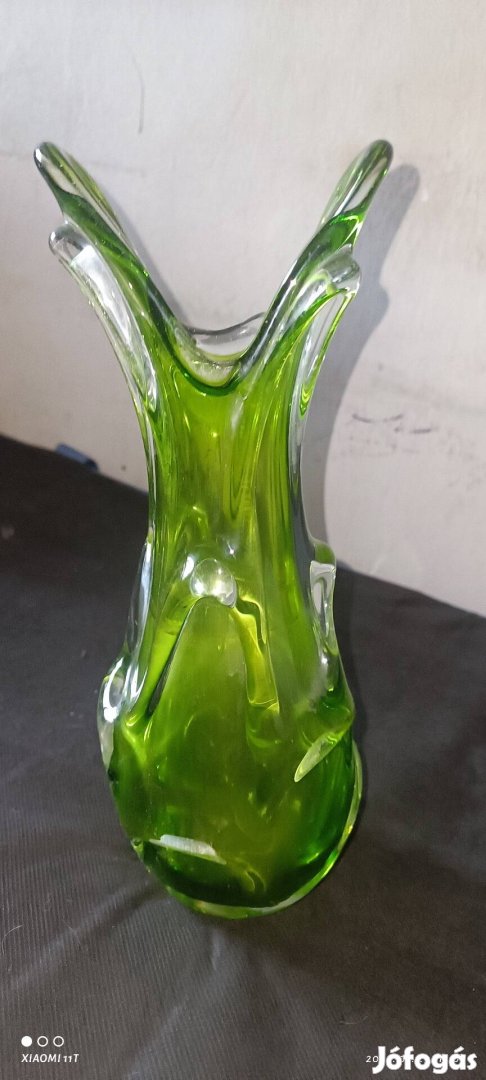 Eladó a képeken megtekinthető eredeti antik 1950 - 70 - es évekbeli Bohemian - Csehszlovákia zöld tömör üveg váza ritkaság.